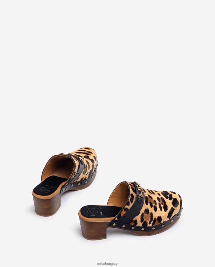 leopárdmintás szőrös bőrpapucs. monogram trim. nagyon könnyű fa hatású blokk 5,5 cm-es sarokkal és 3 cm-es platformmal.
