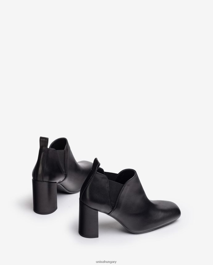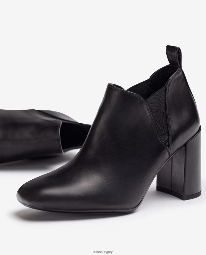 Négyzet orrú bokacsizma bőrből, oldalt ékekkel. hozzáillő színű széles sarok 8,5 cm magas. könnyű, rugalmas, csúszásmentes gumitalp. tökéletes szövetségesei az unisa nőnek.