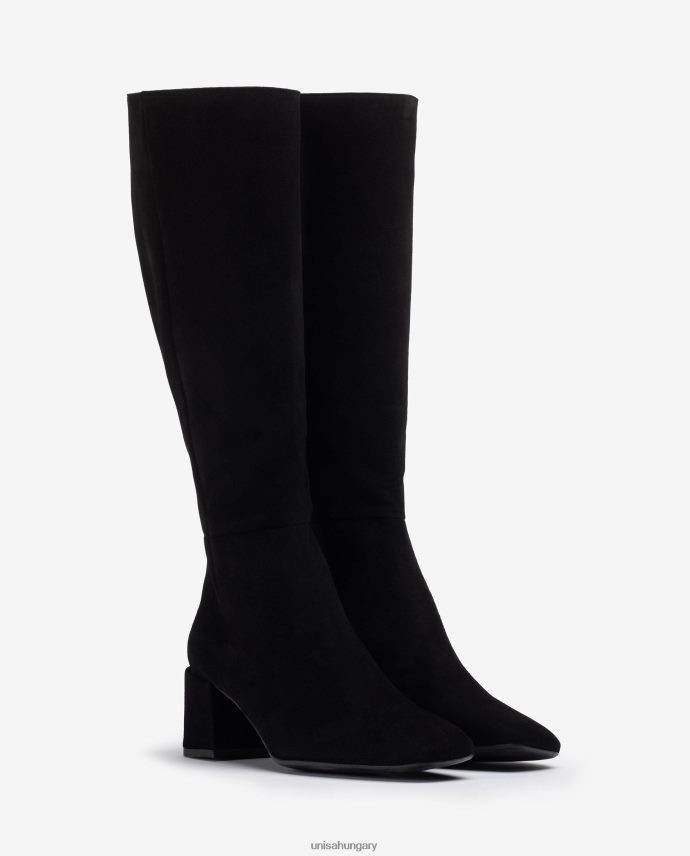 négyzet orrú csizma velúrból. belül cipzárral és hozzáillő színben 6 cm magas széles sarok. könnyű, rugalmas, csúszásmentes gumitalp. nélkülözhetetlen klasszikus az unisa világban.