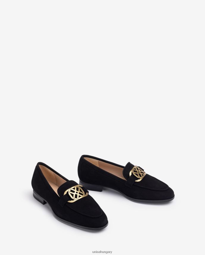 klasszikus velúr naplopó. fém díszítőelem unisa monogrammal. könnyű és csúszásmentes talp. nélkülözhetetlen klasszikus az unisa világban.