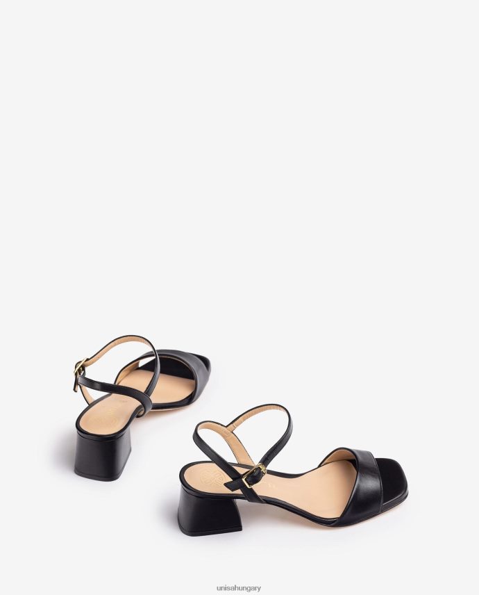 Bőrből készült, négyszögletes orrú szandál. hozzáillő tónusú széles sarok 5 cm magas. a fém csattal állítható bokapánt. bőr talp. nélkülözhetetlen unisa klasszikusok, amelyek minden évszakban megújulnak.