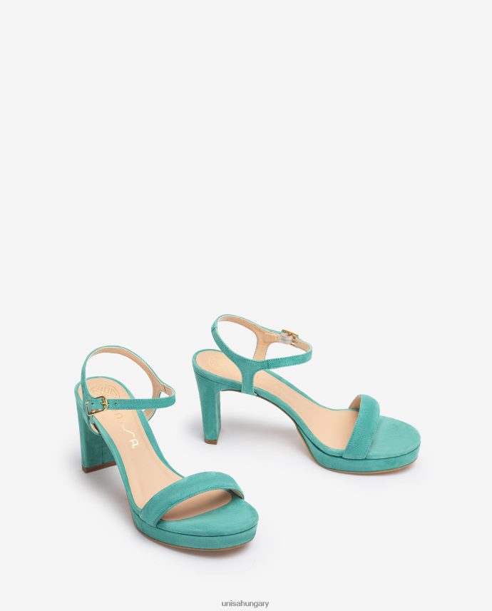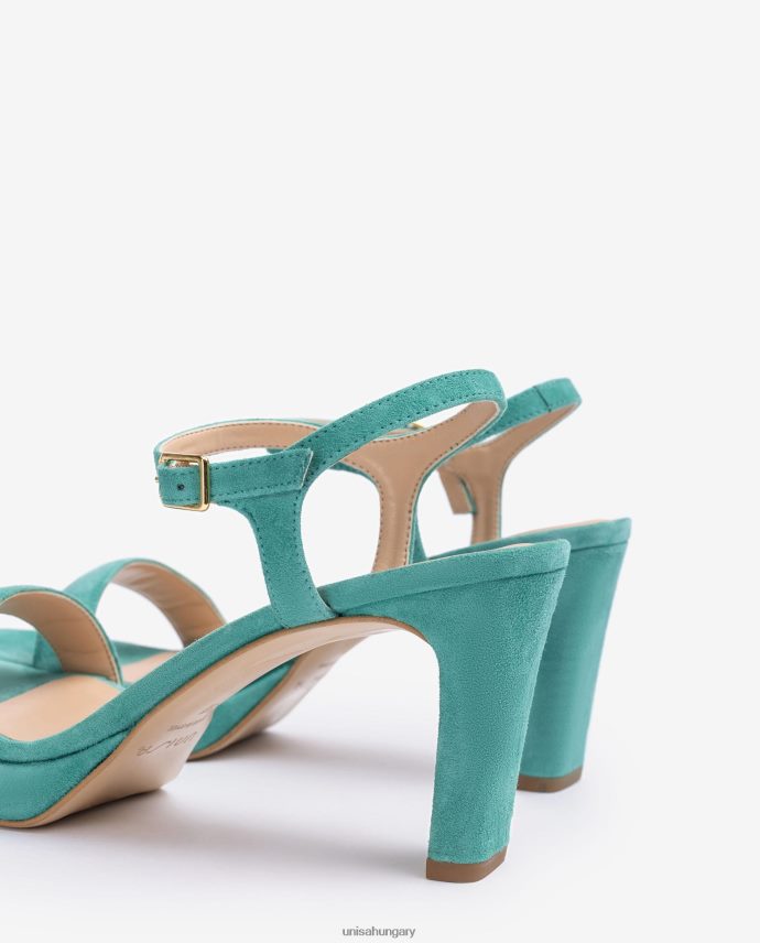 kerek orrú szandál velúrból. 8 cm-es sarok és 1 cm-es platform hozzáillő velúrral borítva. Fém csattal állítható bokapánt és könnyű, csúszásmentes, gumi talppal. luxus kézzel készített felületek.